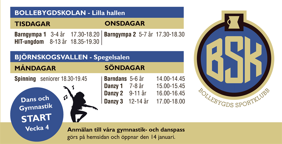 Nu har vi öppnat anmälan till våra gymnastik-, hit- och dans-grupper. Välkommen med din anmälan här (länk) Vi ses! Bollebygds Sportklubb 14 jan 2023 0kommentarer